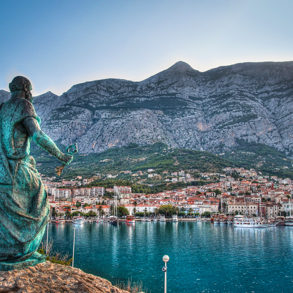 Makarska is one of the most famous tourist destinations on the Croatian coast, attractive for its nature and good climate, rich in tourist attractions and full of hospitable hosts. Makarska is known for its sandy beach, which is almost 2 kilometers long. The walkways are lined with pine trees and surrounded by luxury hotels, tourist facilities, and gastronomical havens, and there is plenty of fun for both adults and children. Makarska is located below the mountain of Biokovo (1762 m), which protects it from the harsh continental climate and is responsible for its rich Mediterranean vegetation, mild winters, long, warm summers cooled by a refreshing breeze called maestral. Makarska has more than 2750 hours of sun each year and the air temperature above 20°C from July to September. During these same months, the crystal-clear sea also averages a temperature of above 20°C.